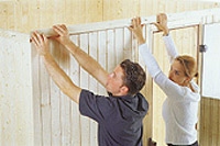 8. Ještě chybí lišty pro lehátka. Vyměřte montážní bod podpěrné lišty a lištu k tomu určenou připevněte. Dejte však pozor! Zde půjde o přesnost!