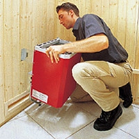 10. Nyní je potřeba dát dovnitř kamna. Přišroubujte je, ale nedotýkejte se přípojek prsty! Mějte na paměti, že připojovat kamna a regulační přístroje smí pouze odborní elektrikáři.