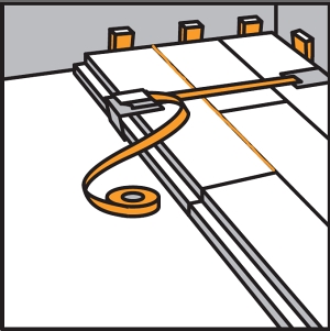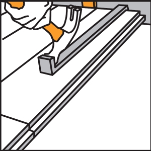 První tři řady desek se zajistí proti opětovnému rozevření napínacím popruhem. Pokud jsou nyní natěsno a rovně slepeny, měly by se nechat nejméně 45 minut schnout a teprve pak by se mělo pokračovat v práci. Nyní pokračujte řadu po řadě a přitom vždy položte nejprve jednu řadu volně, uřízněte potřebný koncový kus a teprve pak začněte s lepením. Koncové kusy každé řady vkládejte natěsno pomocí páčidla.