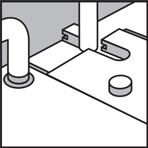 U trubek a topení – také zde se doručuje spára 10-15 mm – se uřízne potřebná deska až ke stěně (s odečtením dilatační spáry) a vyvrtá se průměr spáry s přidáním 8 mm. Vkládaný kus se pak nalepí do mezery a dilatační spára se zajistí klínkem. Dřevěné rámy dveří se zkrátí, aby se deska mohla pod něj položit. Při řezání se přiloží kus desky stranou s dekorem směrem dolů a ten pak slouží jako podložka pro pilku. Ocelové rámy dveří se nezkracují. Vzniklá dilatační spára se vyplní trvale elastickým silikonem.