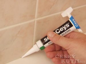 Sanitární silikon naneseme do spáry buď pomocí kartuše v pistoli, nebo, při plnění menších spár, můžeme použít silikon v tubě.
