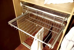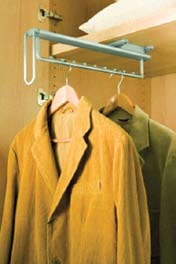 Ani ta nejlépe navrhnutá skříň vám však nebude dobře sloužit, pokud dovnitř věci špatně uložíte. Proto se doporučuje rozdělit odkládací plochy na jakési výškové zóny. Ty nejpoužívanější byste měli mít ve výšce vašich očí, ty méně často používané a sezónní věci dejte do zón pod 50 a nad 170 cm. Pokud si zvolíte ve spodní odkládací zóně zásuvky, měli byste mít dost místa pro sebe i na jejich vysunutí. Od hrudníku výše rozhodně žádné zásuvky nedávejte. Abyste efektivně využili vysoké polohy a uložené věci byli zároveň co nejdostupnější, můžete sem umístit věšákovou tyč s mechanismem na sklápění – pantograf.