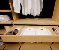Někdo má raději kravaty na věšáčku, někdo je chce vidět přehledně uložené ve speciální kravatové zásuvce. Někdo chce mít vše v jedné zásuvce, někdo naopak rozdělené. Jsou lidé, kteří upřednostňují zásuvky a výsuvné police, jiní mají raději věci zavěšené nebo uložené v koších. Při plánování vašeho šatníku byste měli mít jasno i v takových detailech. Můžete si vybrat různé druhy výsuvných polic s čelem nebo bez, chromové tyče, pantograf, věšák na kalhoty nebo držáky na žehličku a vysavač. Někdo místo samostatné skříňky na boty upřednostní drátěné police přímo v šatníku. Hodně místa dokážou ušetřit i sklopné věšáky. Vědět, co je třeba uložit, je první krok. Větět, jak to nejlépe uložit, je krok druhý. V ložnici se také vyplatí mít koš na prádlo.