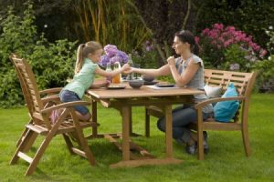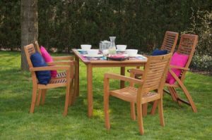 Dřevo je materiál, který skvěle koresponduje s atmosférou zahrady a dřevěný zahradní nábytek se tak může zdát jako nejpřirozenější volbou. Cena takového nábytku je závislá na zvoleném druhu dřeva, ze kterého je nábytek vyroben. Nejčastějším druhem použitého dřeva je smrk, borovice a dub a z exotických dřevin například teak nebo eukalyptus. Kvalita potom znamená i odolnost a vyšší cena. Tato charakteristika odpovídá výrobkům z tvrdého dřeva. Dřevěný zahradní nábytek je bytelný a má vysokou stabilitu, pokud volíme robustní a masivní typy , vydrží ním dlouhá léta. Abychom zachovali dřevěný nábytek v dobrém stavu po několik let, je nutné jej pravidelně ošetřovat – dřevo z tuzemských dřevin pravidelně ošetřujeme lazurami a impregnacemi na dřevo, exotické druhy dřeva pak napouštíme teakovým olejem .
