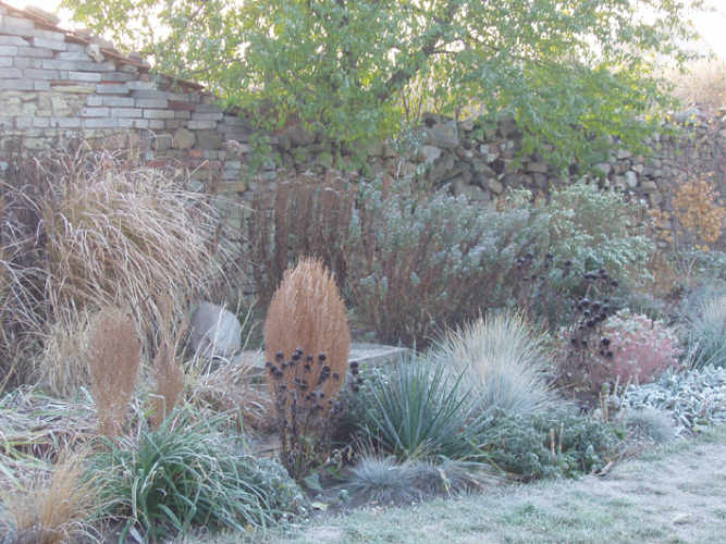 Před příchodem zimy stačí nízké trávy a traviny přikrýt chvojím. Velmi oblíbený druh vysoké trávy pampas (Cortaderia) je nutné svázat, trs obsypat uschlým listím a navrch je vhodné položit ještě chvojí. Tuto velmi náchylnou trávu nikdy nevysazujeme do vyšších poloh a upřednostňujeme světlá a osluněná stanoviště.