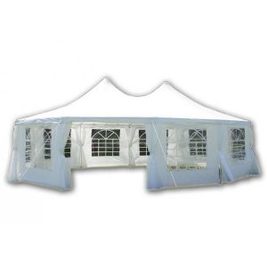 Zahradní párty stany lze běžně zakoupit v rozměrech od 3×3 m až do cca 6×12 m. Pro občasné použití na zahradě při grilování s přáteli apod. bude rozměr 3×3 m pro Vás určitě dostačující. Při větším počtu hostů, případně potřebě umístění dalších propriet do stanu je vhodné si naznačit uvažovaný půdorys na zem a nanečisto vyzkoušet, jestli budou dané rozměry dostačující.