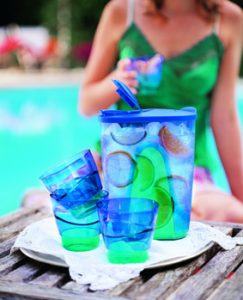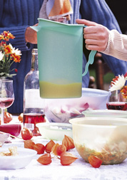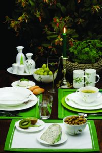 S venkovním stolovacím servisem si dnes nemusíme dělat velké starosti – na trhu je nabízena celá řada setů, které jsou poměrně levné, a přitom esteticky přijatelné. Velmi vhodnými a oblíbenými se stávají sady plastového barevného nádobí, které je určeno i k běžnému používání doma. Ceny za set pro čtyři či šest osob se pohybují ve stovkách korun. Hlavní výhoda? Takové nádobí většinou bez problému přežije i případný pád, nehrozí střepy v trávě a můžeme jej umýt v myčce. Pro menší společnost a oficiálnější akce, ale také pro vlastní potěšení se vyplatí samozřejmě sáhnout po klasice – porcelánu, keramice a sklu. I zde platí, že barevné nádobí vypadá na zahradě skvěle, není nutné se omezovat tradiční bílou. Kdo stoluje na zahradě pravidelně, může si k takovému nádobí pořídit i příbory ve shodném designu, totéž platí o sklenkách. Aby byl efekt ze stolování pod širým nebem dokonalý, postavíme na stůl vázu s kyticí lučních květů nebo zahradních trvalek. Jako dekorace mohou posloužit na stůl položené oblázky barevně kontrastující s ubrusem.