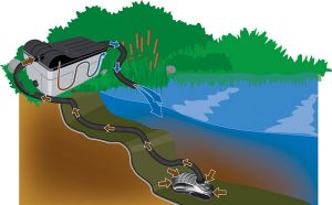 Filtrační čerpadla jsou naprosto nezbytnou součástí zahradních jezírek. Podle zvoleného modelu lze s jejich pomocí odstranit znečištění vody až do velikosti nečistot o průměru 8 mm. O čistotu vody v zahradním jezírku pečují také UV-C přístroje. Ty pomocí UV záření likvidují zárodky, které jsou původcem tvorby řas. Pro ryby a rostliny jsou ale nezávadné. Pro odstranění hrubých nečistot až do velikostí částic jeden centimetr můžete použít vysavače kalu. Vysavače kalu vysávají částice do velikosti 1 cm. Jejich injektorové trysky uvolňují ze dna nečistoty, které pak z jezírka odvádějí pomocí hadice. Výhodou použití vysavačů kalu je volnost pohybu, a břeh jezírka není trvale „nezdobí“ žádný přístroj. Nedostatek kyslíku v jezírku může vyřešit provzdušňovací čerpadlo. Kyslík je pak čerpán do jezírka pomocí provzdušňovacího kamene, který může být umístěn také přímo uvnitř filtru. Letních večerů u zahradního jezírka si budete moci užívat ještě lépe, když bude jezírko vhodně osvětlené. Celá řada produktů kombinovaný efekt světla a vody ještě zdůrazní.
