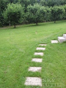 Tam, kde to lokální podmínky umožňovaly, byly používány ploché kameny, tzv. šlapáky, kladené na povrch půdy. Časem lidé přišli na to, jak zabránit tomu, aby se kameny při deštích „neutopily“ v blátě – kladli je na propustné vrstvy kaménků či písku, tedy na jakýsi drenážní podklad.