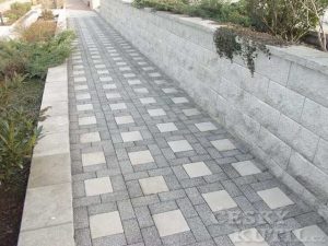 Rozdělit velkou plochu na malé díly je výhodnější: menší segmenty se snadněji vyrábějí, přepravují i pokládají, při poškození je možno „postižený“ kus vyjmout a nahradit novým. Tvar a probarvení jednotlivých segmentů navíc působí esteticky a výsledný efekt předčí všechny jednolité betonové plochy, které známe z letišť a „buzerplaců“. A toto řešení je výhodné také při a po dešti: tam, kde by velké plochy litého betonu se mohly podmáčet a vlastní vahou lámat v místě vzniku půdních dutin, dlažba dobře položená na kvalitně zhutněném povrchu opatřeném drenážními vrstvami zůstává v jedné rovině a nezdvihá se ani nepropadá.
